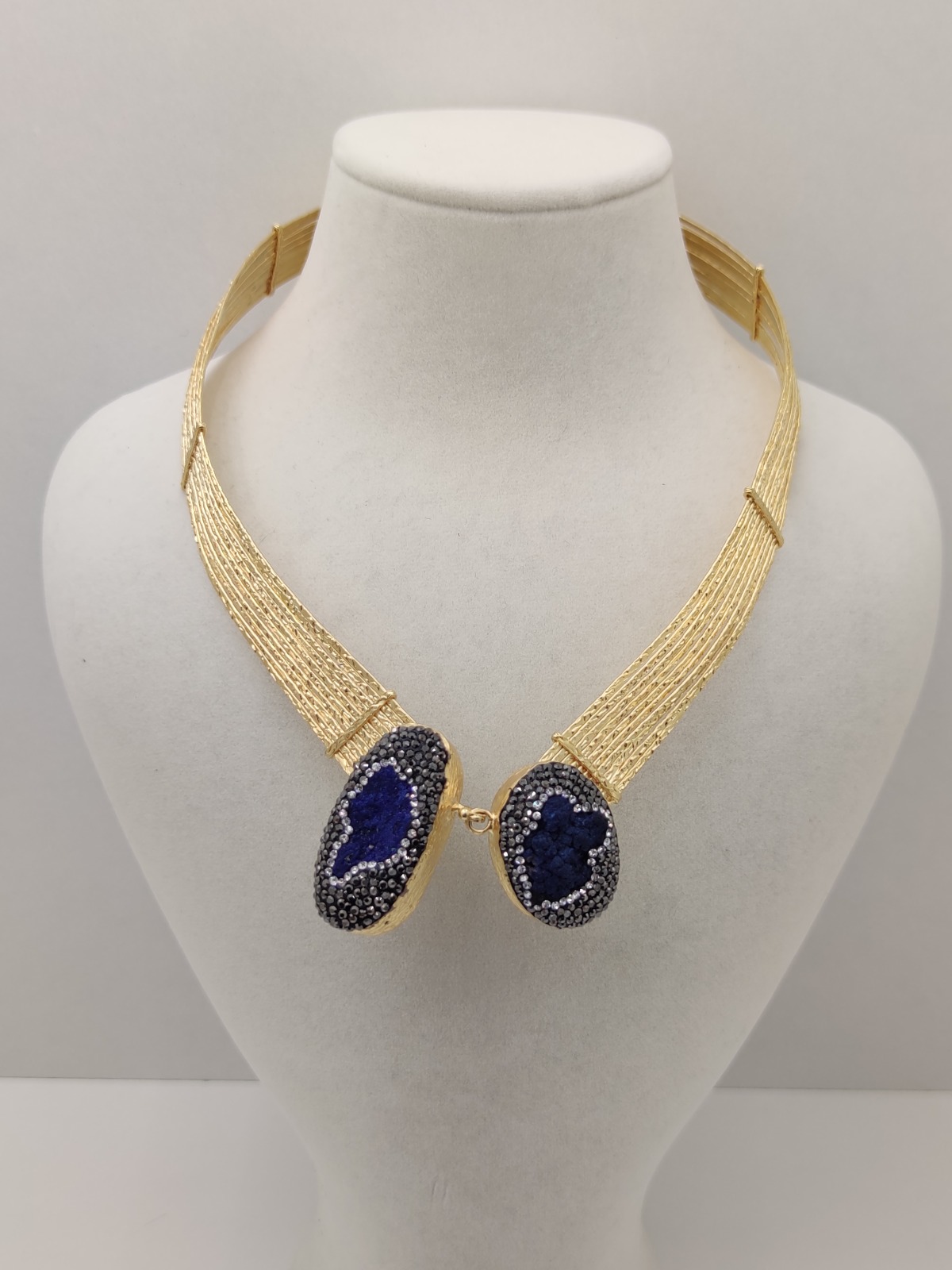 KRİSTAL BEZELİ AZURİT YAKA KOLYE