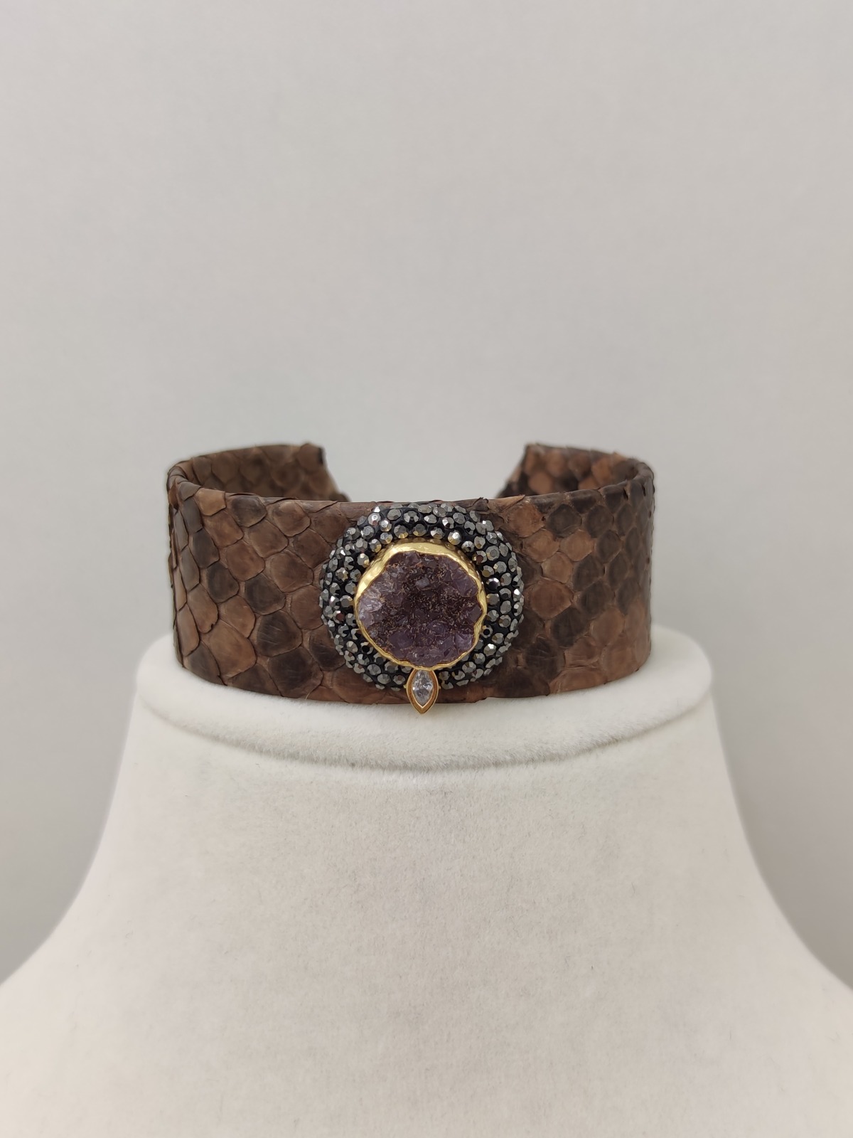 KRİSTAL BEZEMELİ AMETİST DERİ CUFF