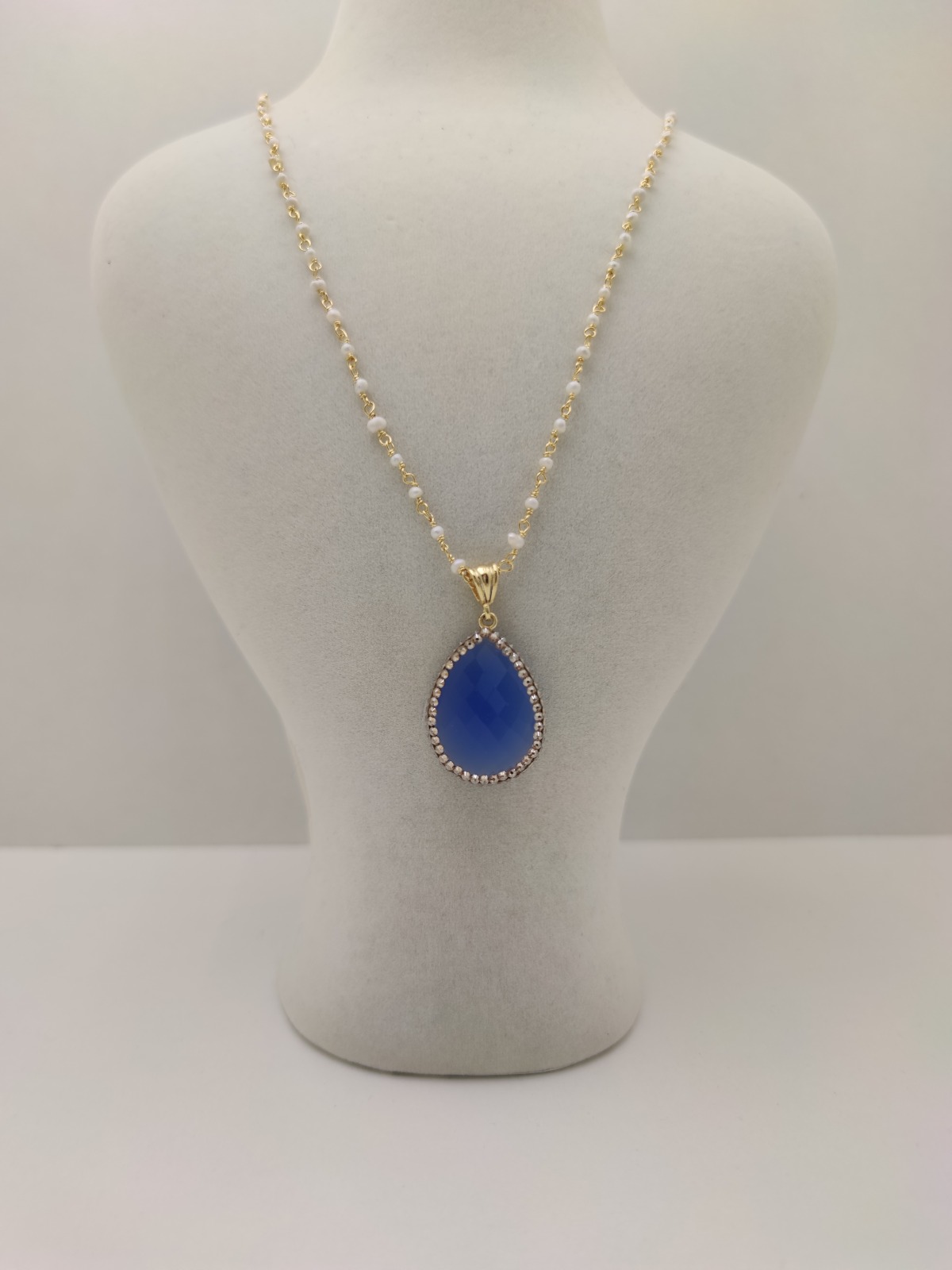 İNCİ ZİNCİRLİ KRİSTAL BEZEMELİ AKİK KOLYE