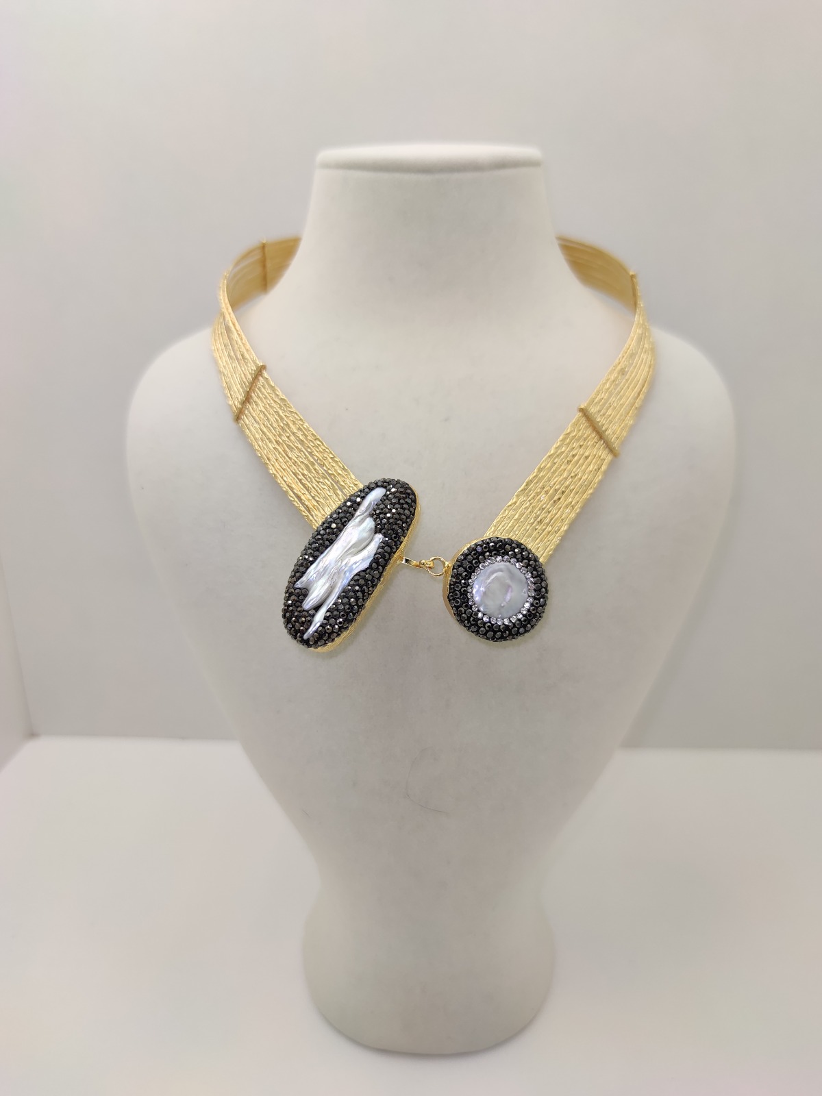 KRİSTAL BEZELİ İNCİ YAKA KOLYE