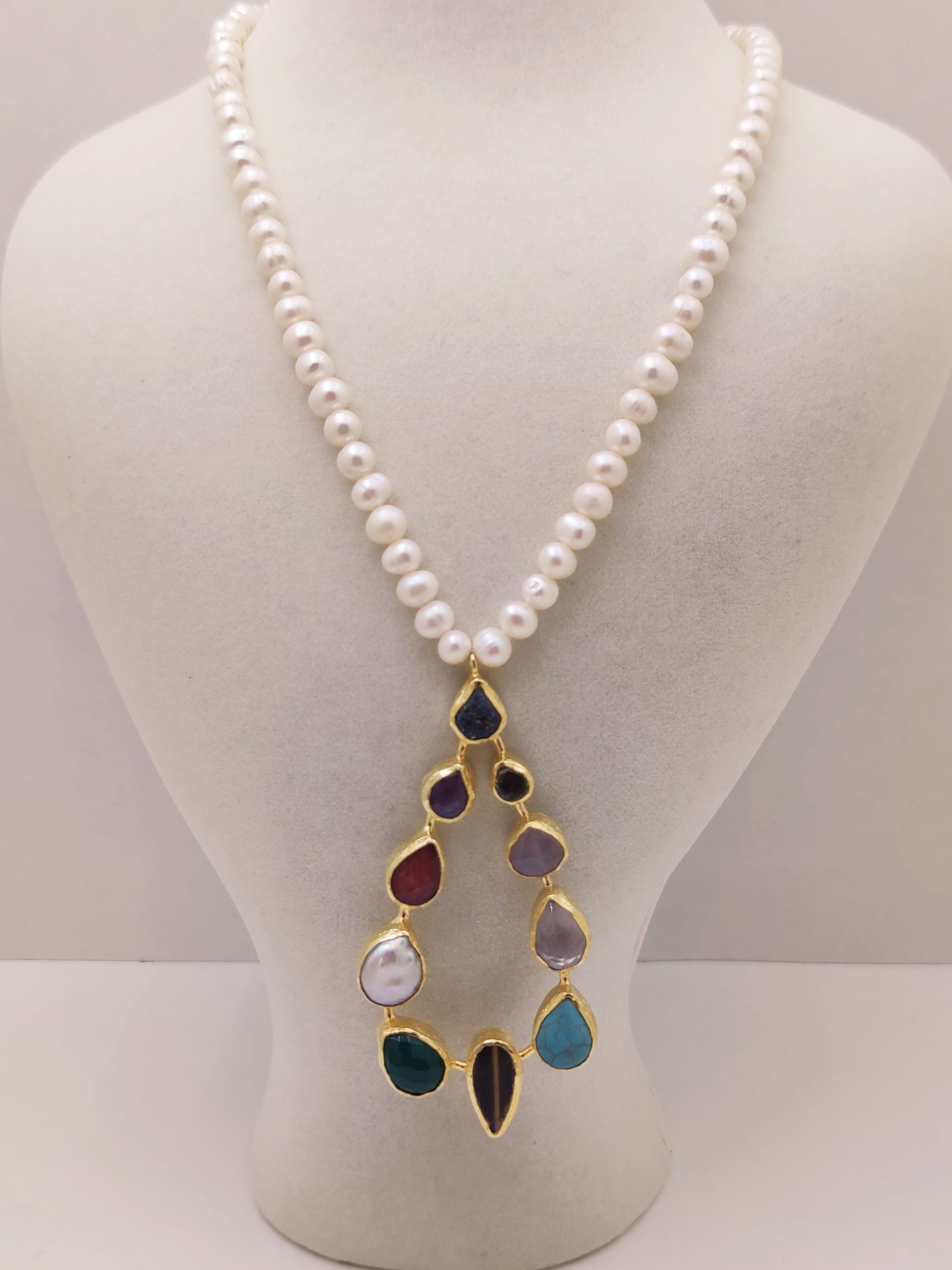 SIVAMA DAMLA FORMUNDA TAŞ VE 8-9 MM İNCİ KOLYE