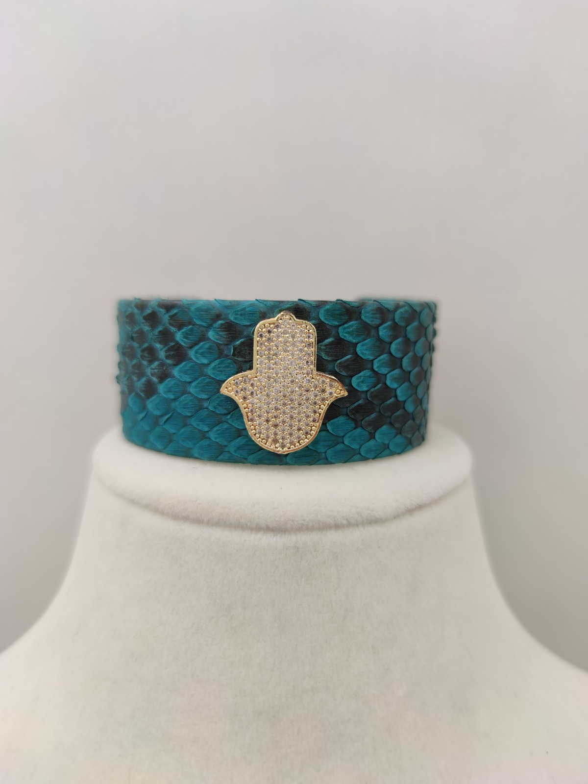 YILAN DERİSİ CUFF ÜZERİNE ZİRKON FATİMA ANA