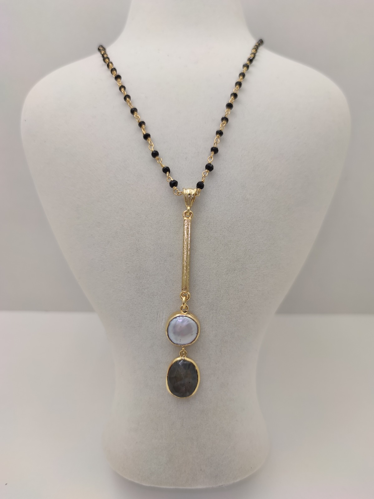 ONİX ZİNCİRLİ SIVAMA LABRADORİT VE İNCİ KOLYE
